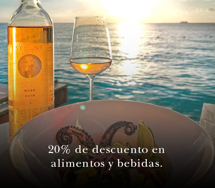 *Promoción válida en estancias mínimas de 3 noches. Tarifa en moneda nacional por habitación por noche en base a ocupación sencilla o doble, más 16% de IVA y 5% de ISH, $4 USD de Impuesto de Saneamiento Ambiental y $22 USD de Service Charge. No aplica con otras promociones. Sujeto a Disponibilidad. Flexibilidad para cambios y cancelaciones. Términos y Condiciones: 1.No aplica para servicio de mini bar. 2. Sujeto a Disponibilidad. Early Check-in a las 10 AM y Late Check-out a las 4 PM. 3. Resort Credit aplica solo en estancias mínimas de 4 noches. Descuentos y Resort Credit aplica antes de impuestos y no aplica para propinas ni impuestos. 4. Máximo 2 niños de hasta 12 años de edad compartiendo habitación con sus papás. Alimentos únicamente del Menú Infantil.